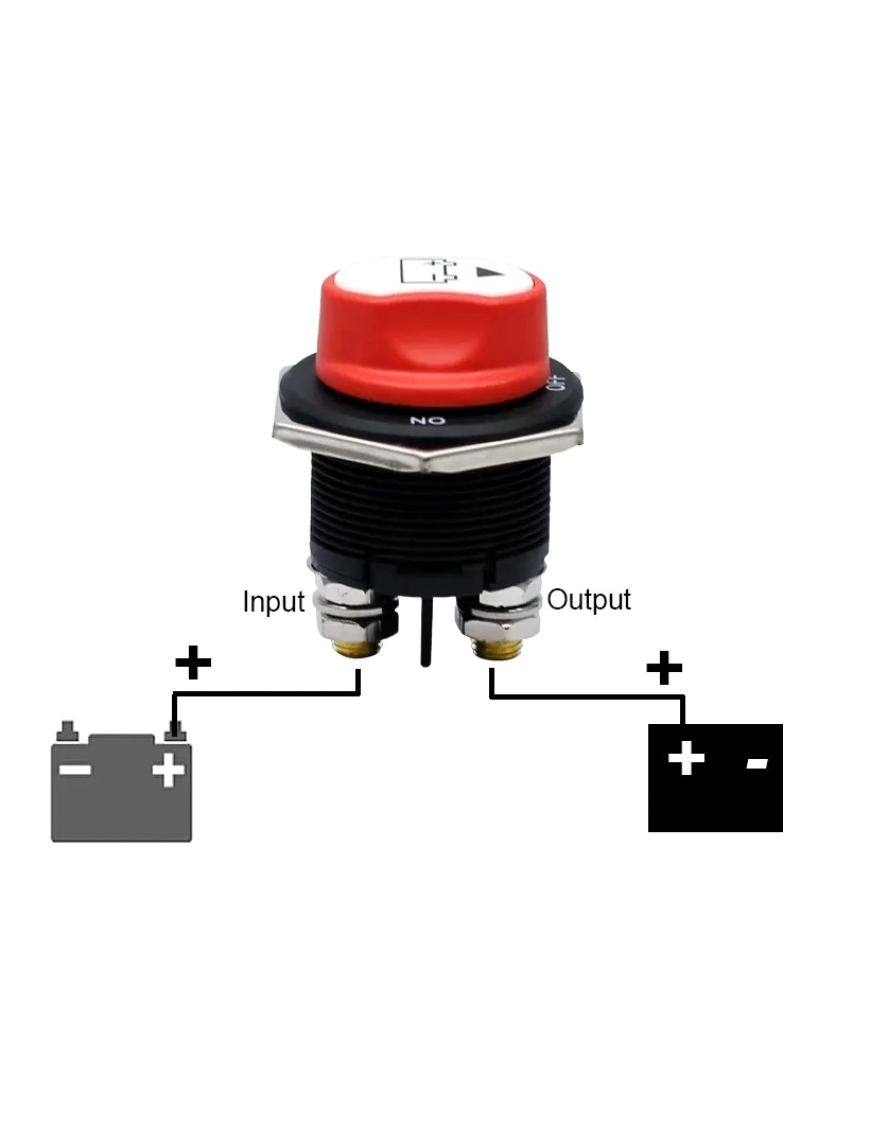 Універсальний вимикач маси (відсікач акумулятора) використовується як аварійне вимкнення живлення у мотоциклі, квадроциклі, човні, автомобілі тощо.