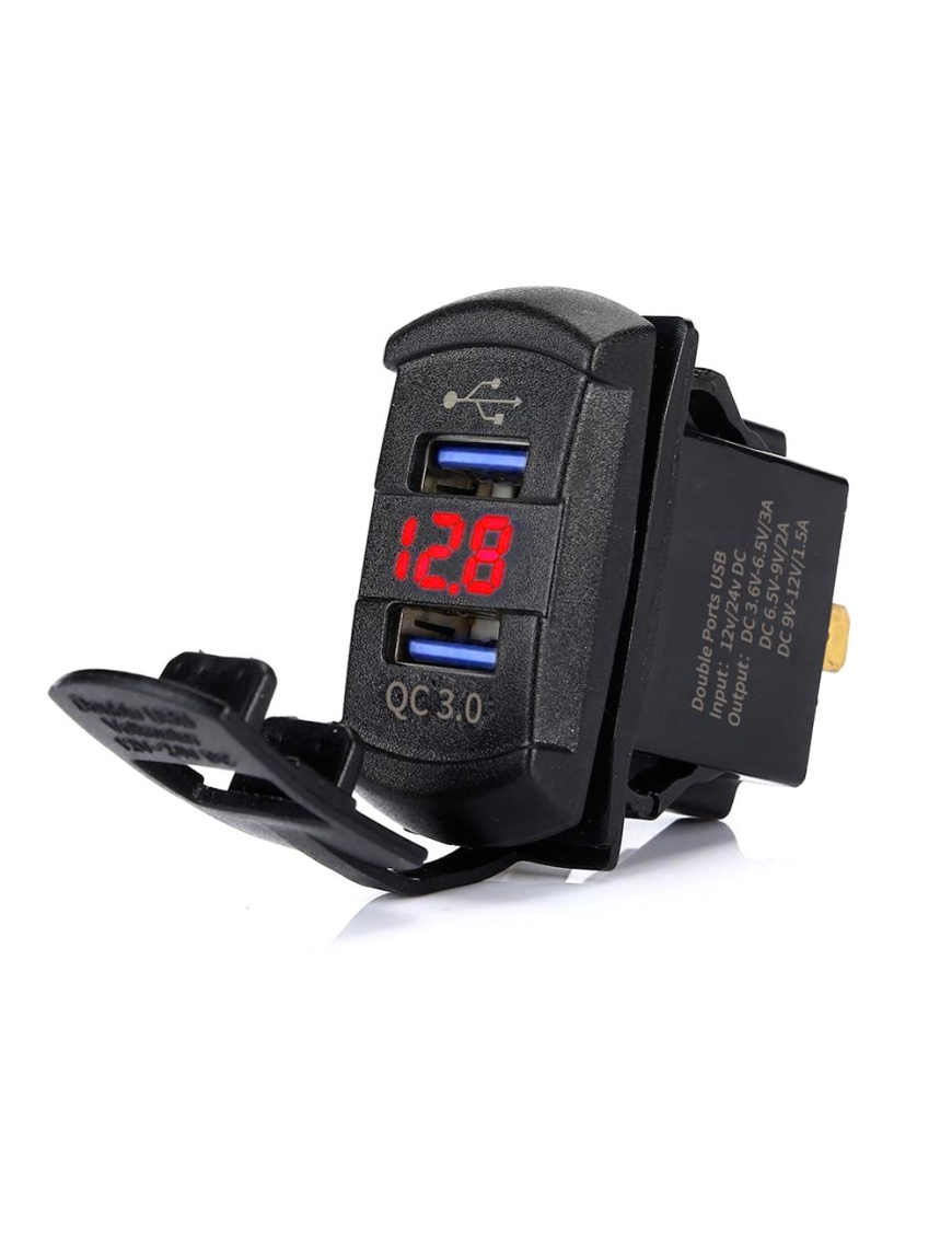USB зарядка з двома портами швидкісної Quick Charge 3.0 зарядки, з показником вольтажу.