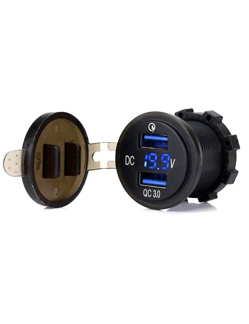 Адаптер USB зарядки з двома виходами Quick Charge і вольтметром.