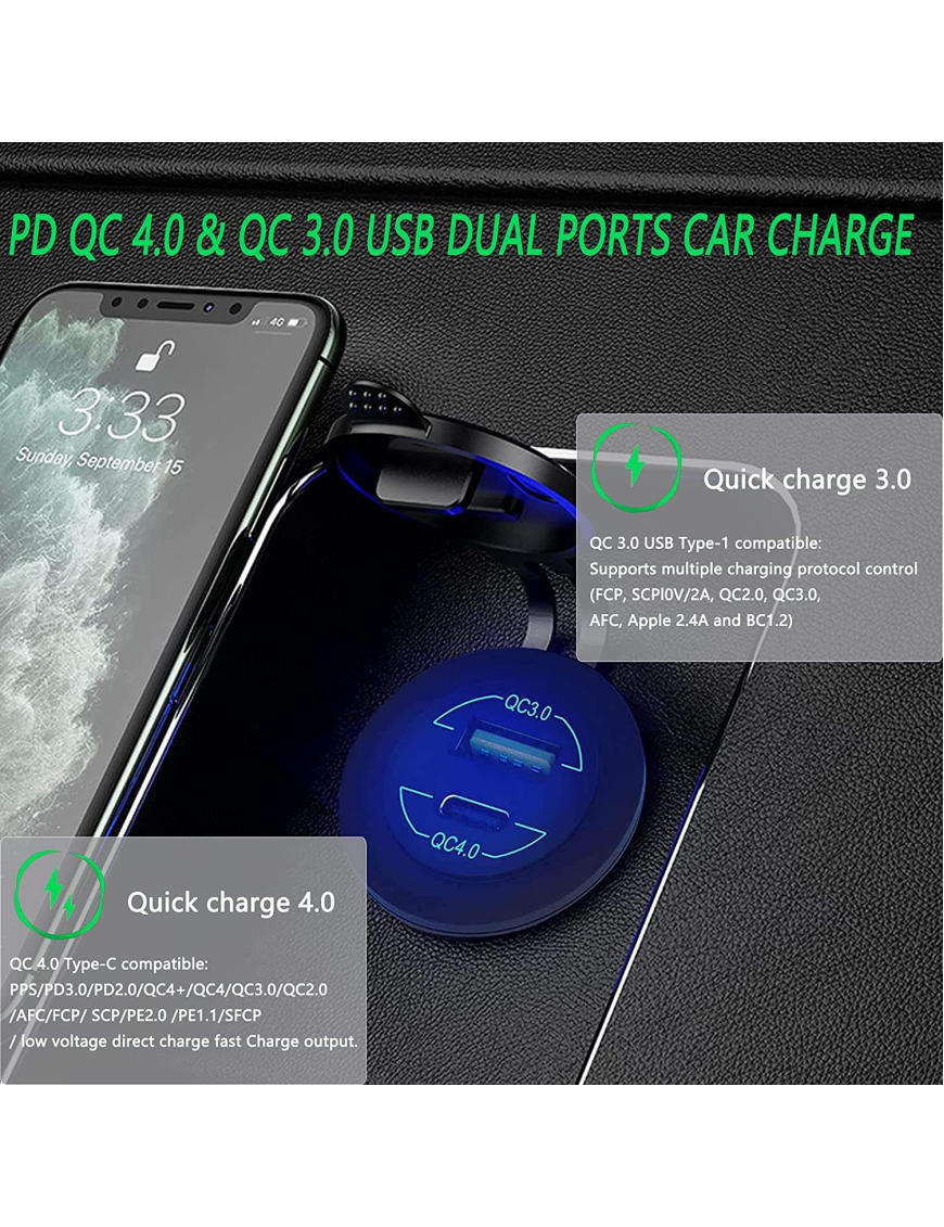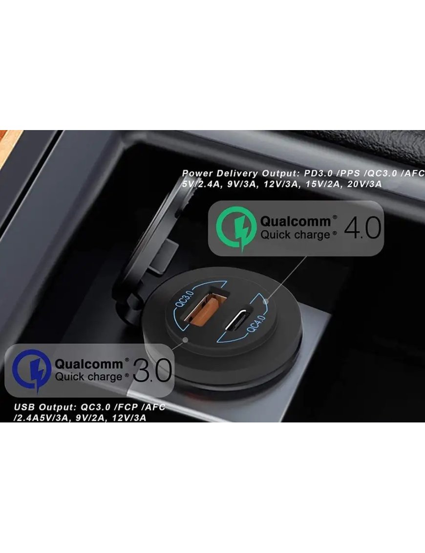 Адаптер USB зарядка QC 3.0 + QC 4.0 PD Type-C 60W, врізна юсб зарядка, USB зарядка QC в авто врізна,