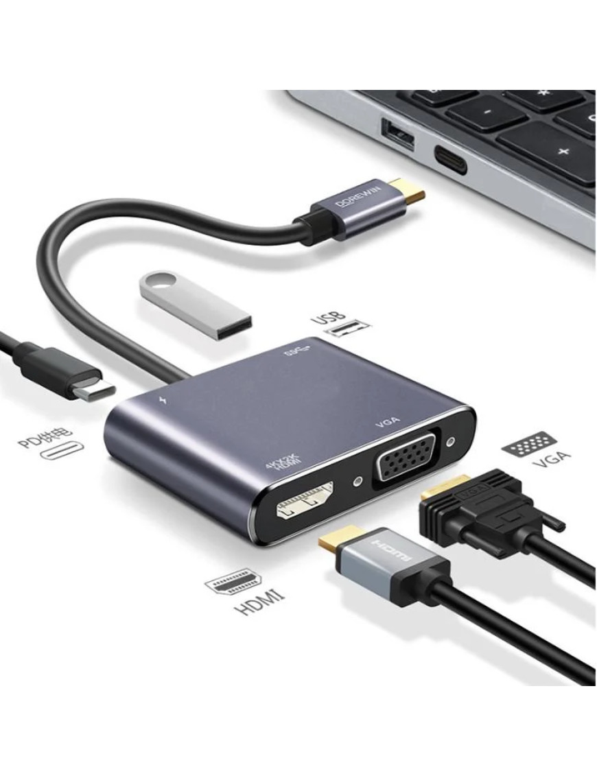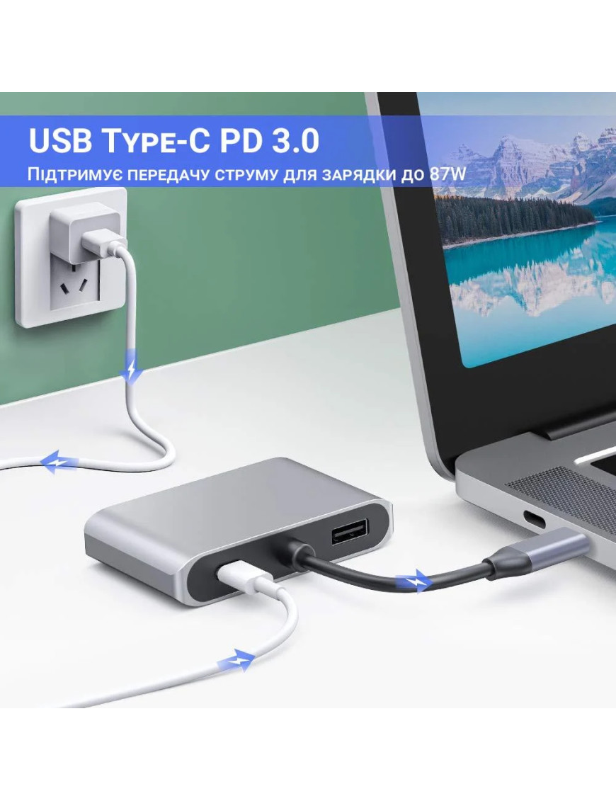 Компактний пасивний Type-C - хаб 4 в 1 з підтримкою 4К відео.