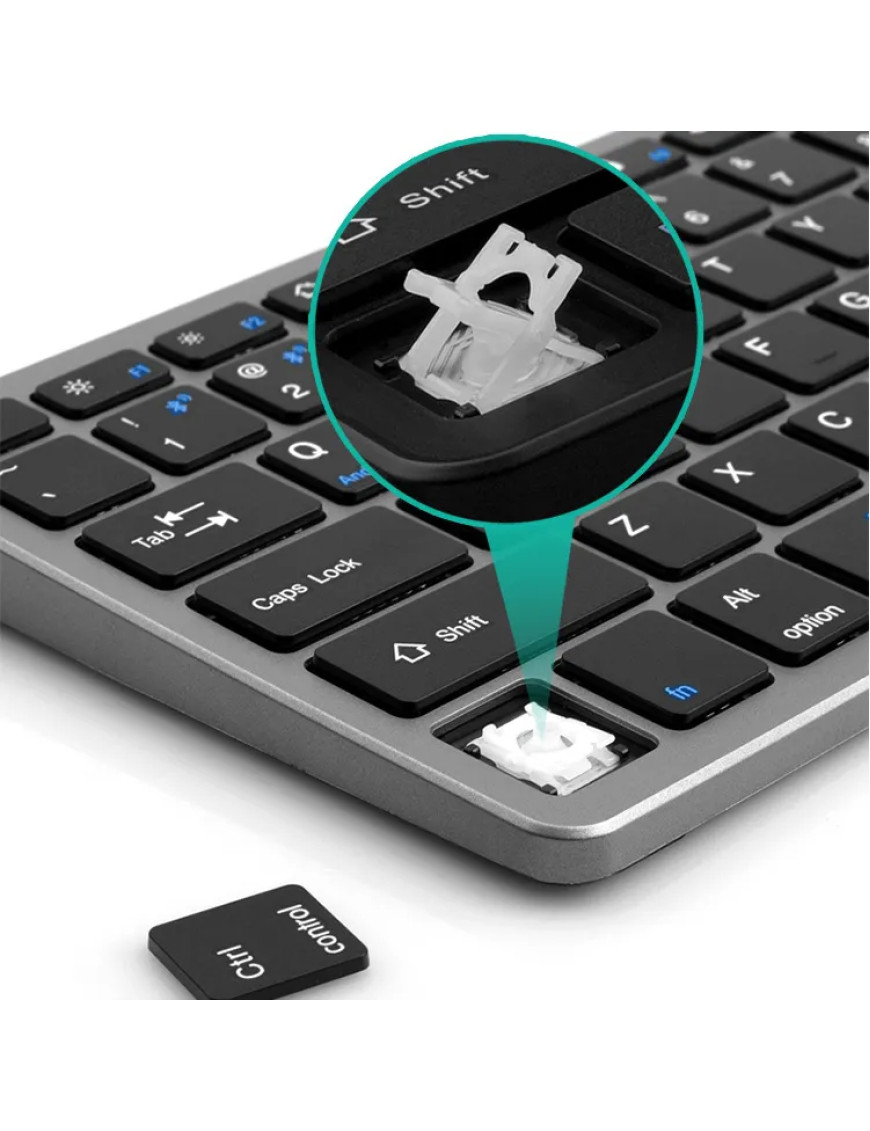 Клавіатура має 3 діапазони Bluetooth, що дозволяє під'єднувати її до 4- різних пристроїв (включно з 2,4 GHz), перемикання між пристроями відбувається в один клік.