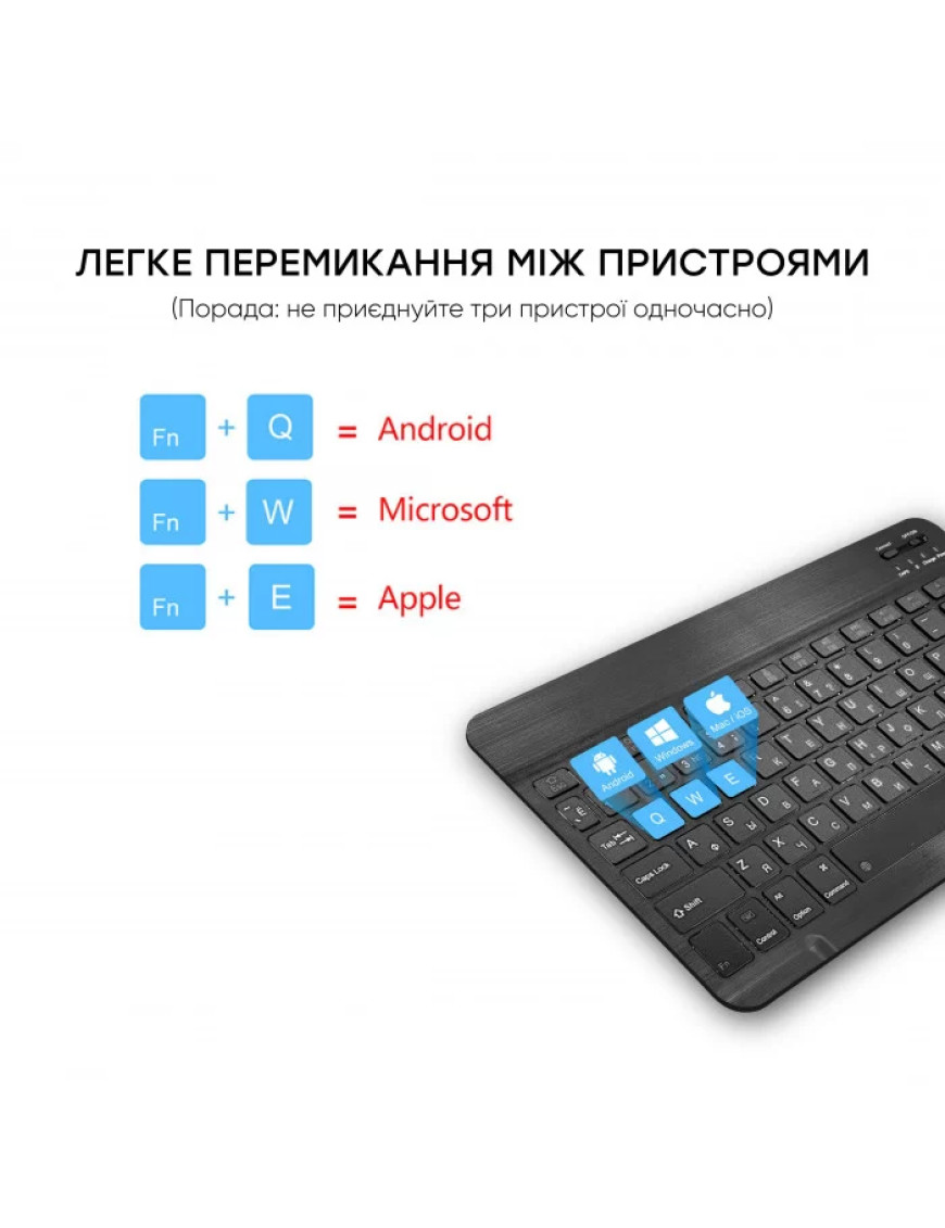 Портативна bluetooth-клавіатура – це відмінне доповнення для Вашого планшету/телефону/смарт телевізору та багатьох інших девайсів.