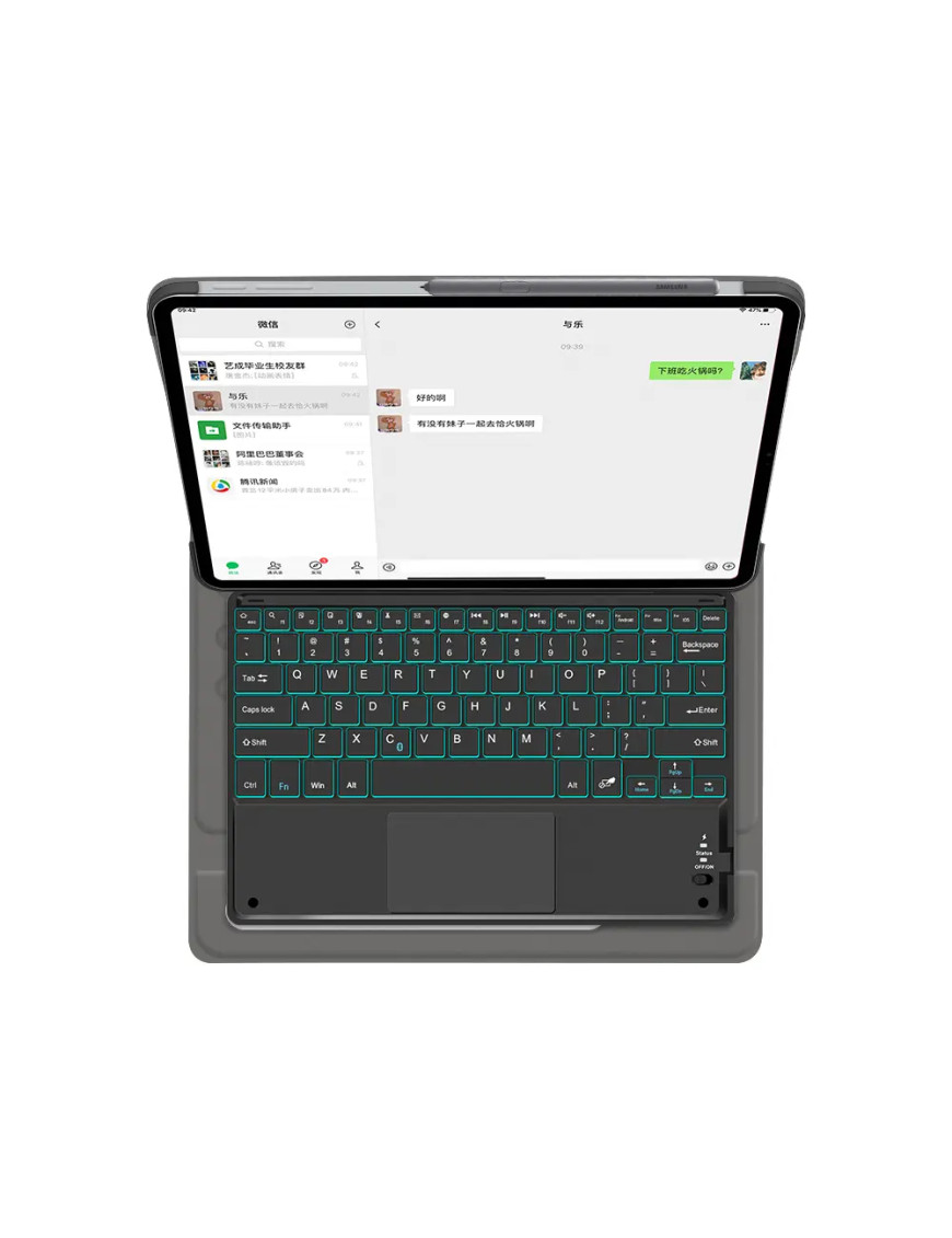 його чохлом із магнітною клавіатурою, поєднаною з тачпадом.