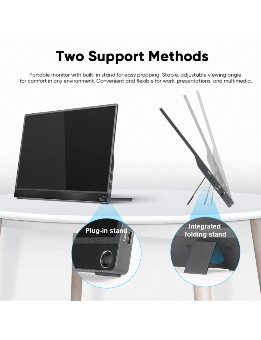 Завдяки алюмінієвому корпусу та вазі лише 0,62 кг, монітор зручно носити з собою. Він чудово підходить як основний екран для смартфона або ПК, а також як додатковий дисплей для ноутбука чи ігрової приставки.