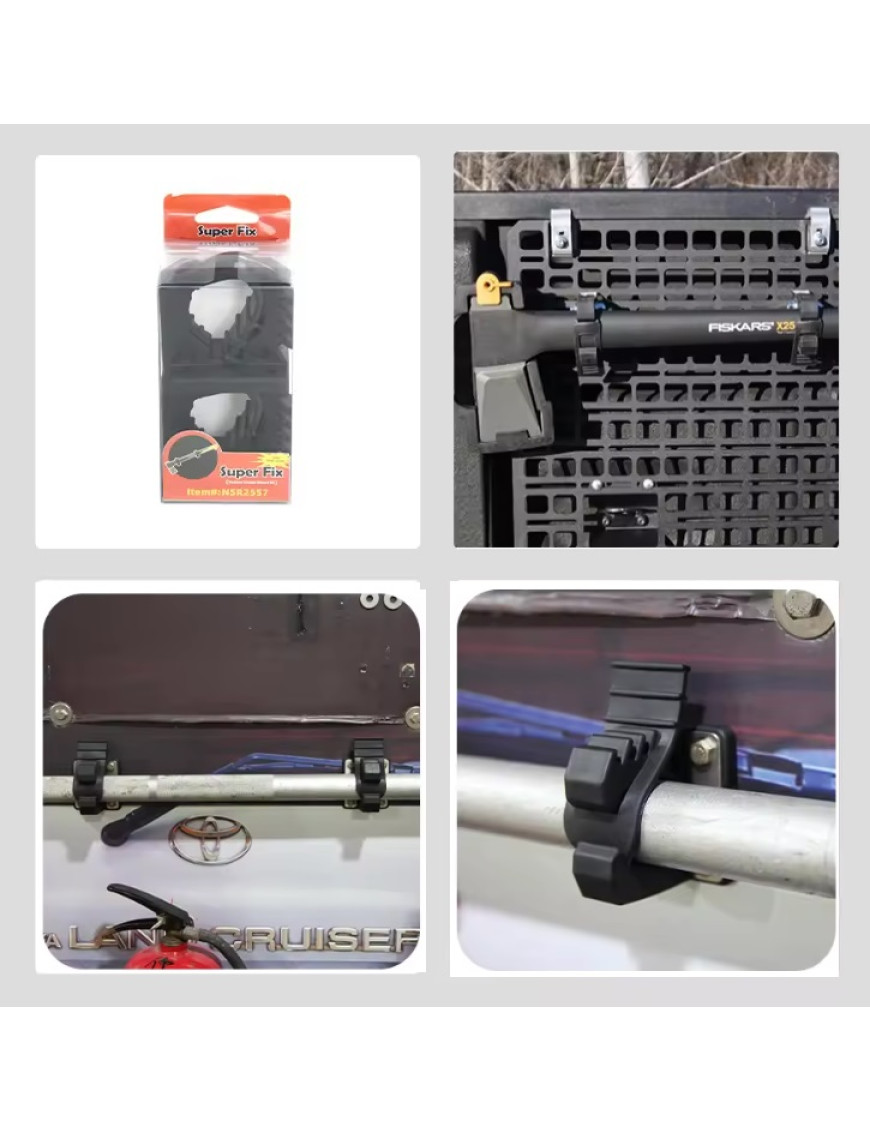 Кріплення Super Fix представлені в різних розмірах і використовуються для фіксації різних об'єктів у вантажних та легкових автомобілях, човнах, спецтранспорті, у промисловості та сільському господарстві.