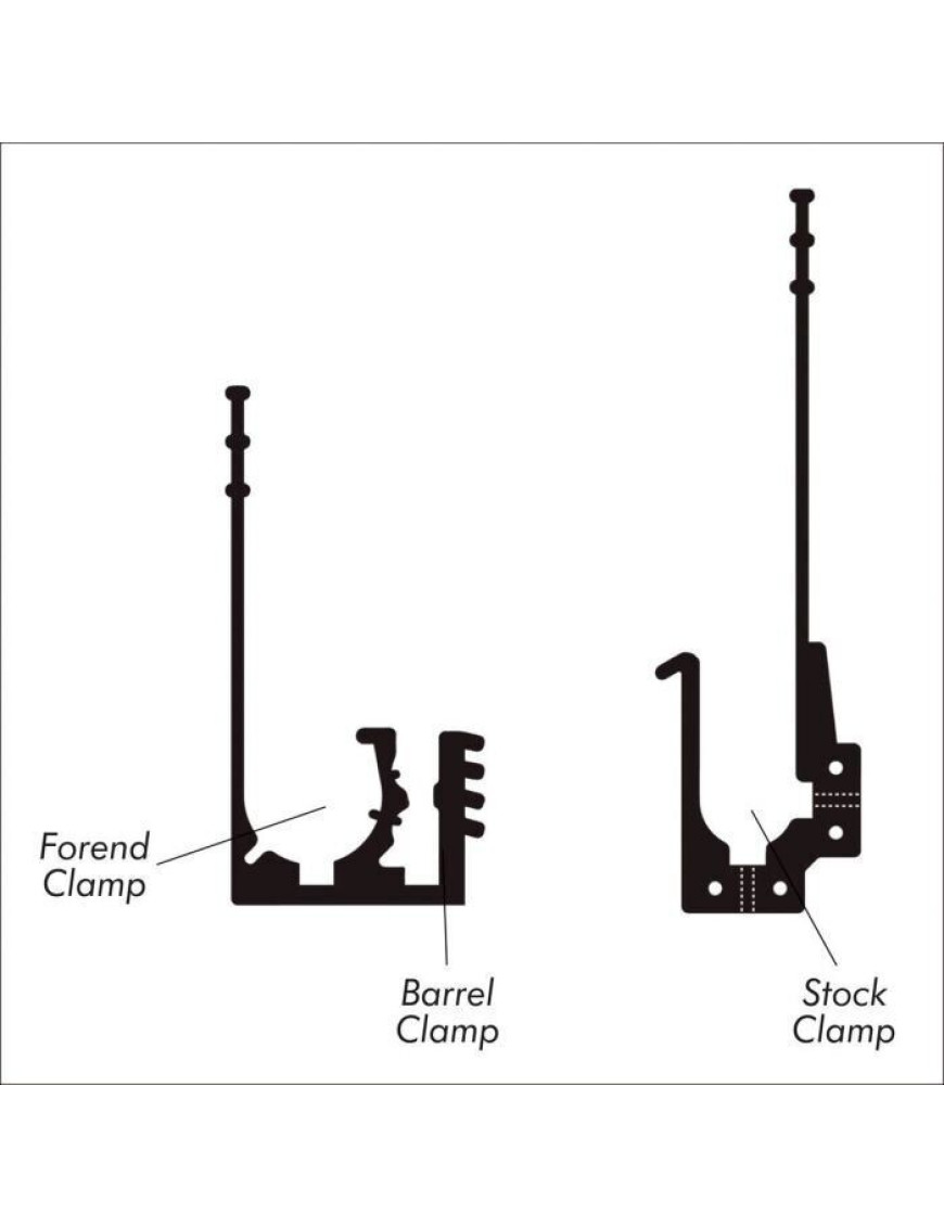 Кріплення з двох частин: фіксація прикладу і друга частина для цівки. Передбачено достатню кількість кріпильних варіацій під будь-які габарити. Легко монтується в автомобілі, спецтехніці, мототехніці.