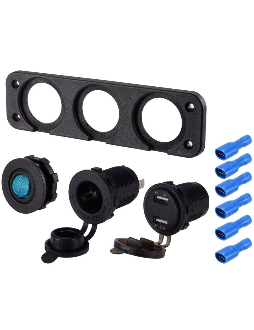 Автоблок 3 Charger USB 2.1+1А вольтметр прикурювач кнопка на рамці
