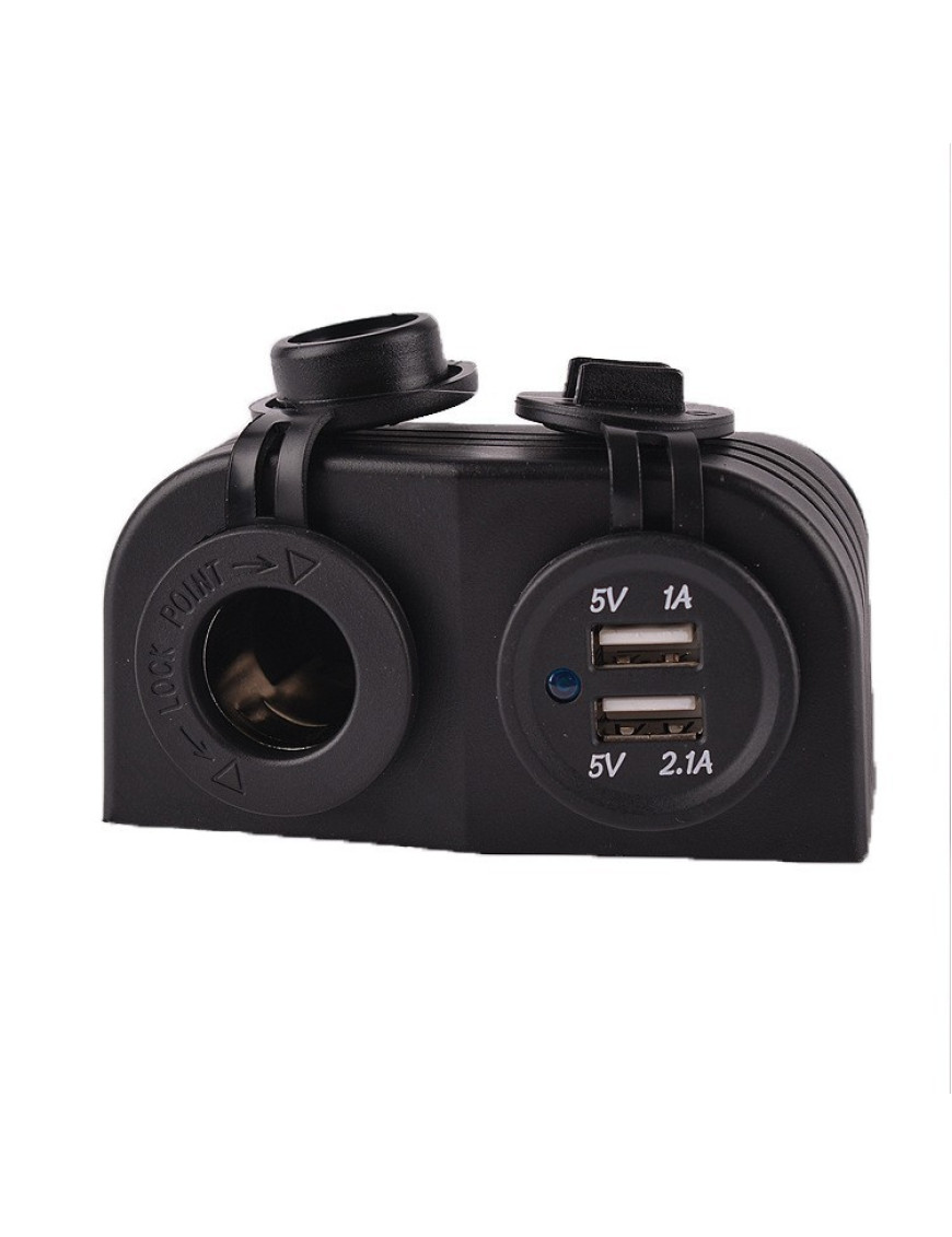 Автоблок с двумя модулями: USB на два порта 2.1А + 1А и гнездом прикуривателя.