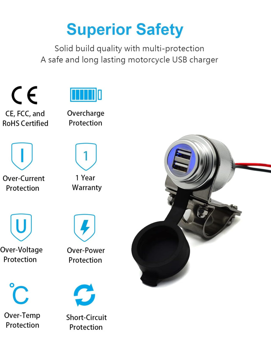 Фірмова швидкісна мото USB зарядка від Cliff Top для мотоциклів, квадроциклів, човнів.