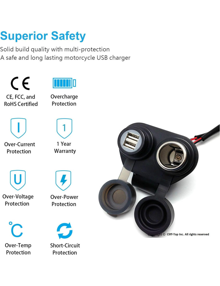 Фірмова потужна розетка на 12V 15A і 2 USB порти від Cliff Top, модель 4A Magnetic Switch USB + Cigarette Socket для мотоциклів, квадроциклів, човнів.
