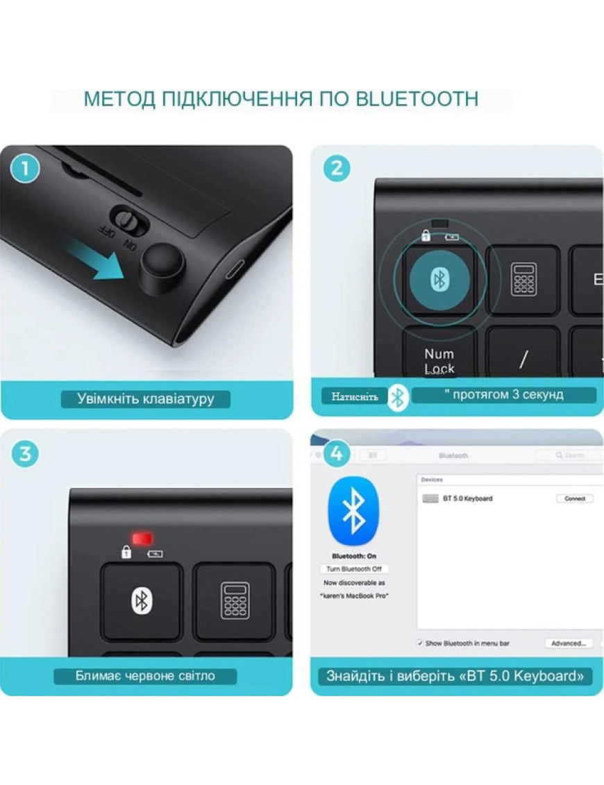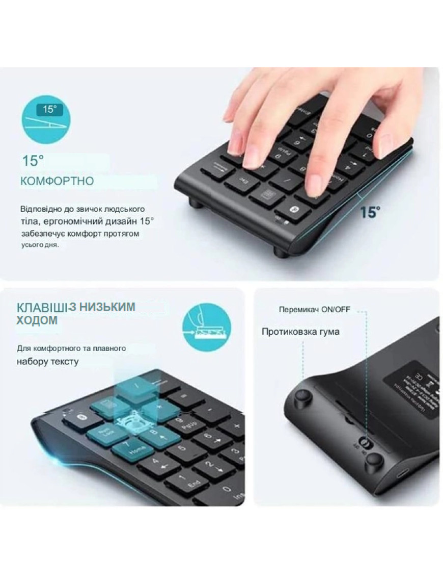 Бездротова цифрова клавіатура (NUM pad) з Bluetooth-підтримкою - це ідеальний вибір для тих, хто шукає зручний та