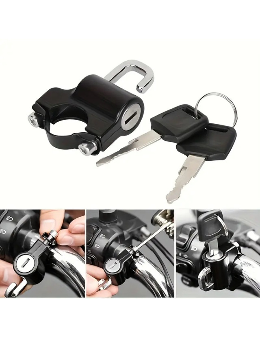 Металевий замок для мотоциклетного шолома на кермо 22-26мм, Замок для мото шолома, Металевий замок на кермо для пристібання шолома, замок на кермо для зберігання шолома,