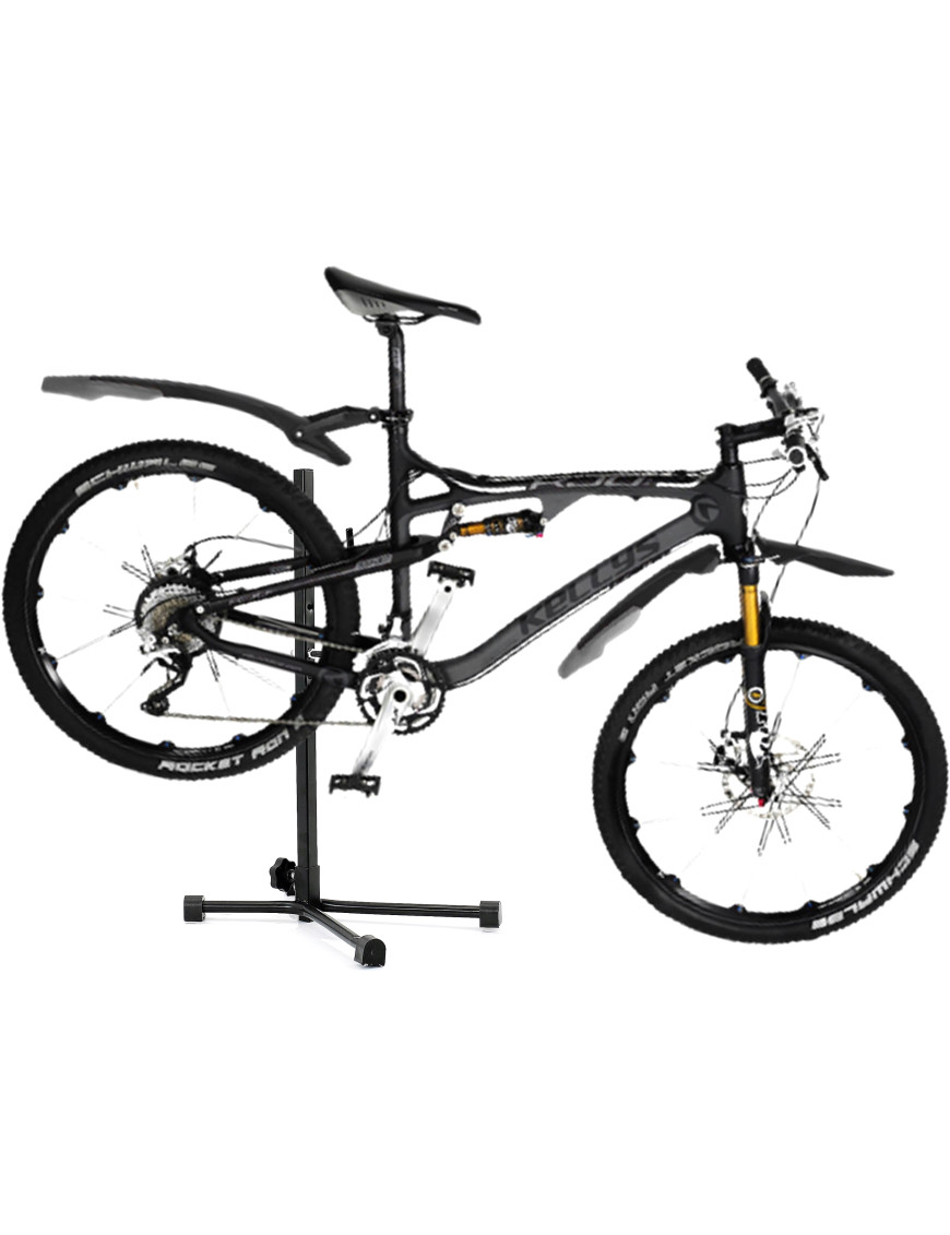 Велосипед на підставці може вільно «крутити педалі» для регулювання перемикачів, гальм, натягувати спиці.