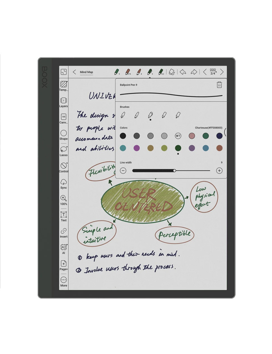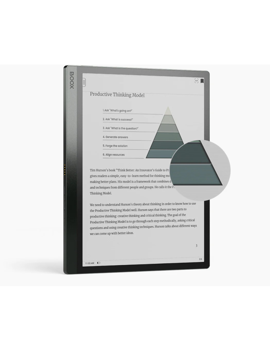 Створенний для професійної роботи з текстовими і рукописними документами, PDF файлами, графіками, перегляду схем, редагування інформації. Екран дозволяє бачити кольорові деталі картинок, текстів, графіків та діаграм. Шкільні підручники, комікси, дитяча художня література, робота у кольорі зі стилусом та інші практичні застосування можливостей кольорового екрану.