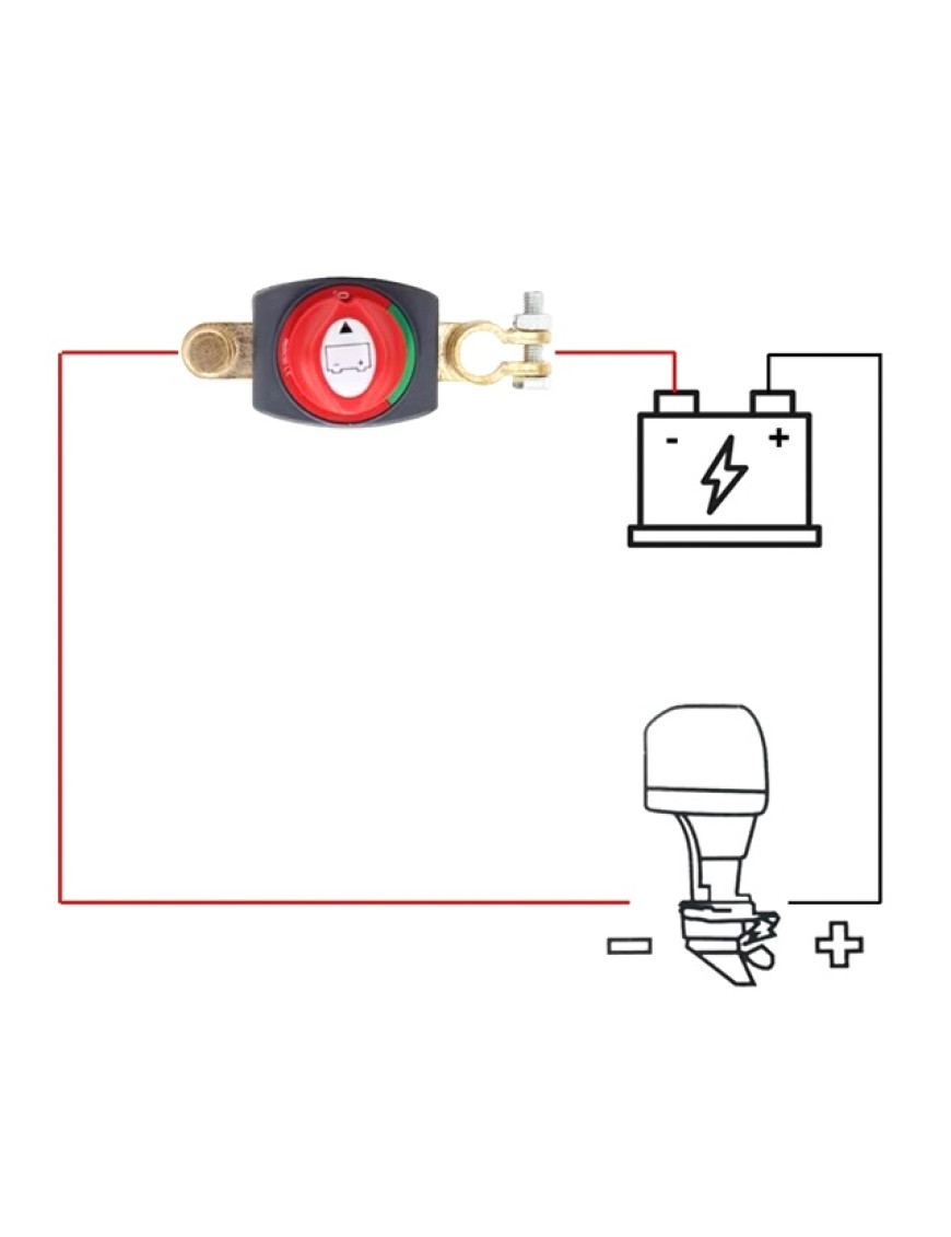 Вимикач з отвором під клему акумулятора та пальцем під клему кабелю - прямий монтаж без додаткових перехідників