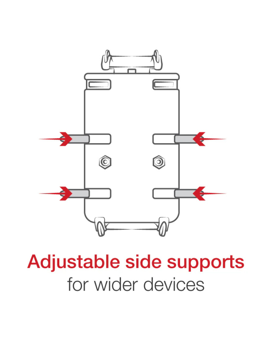 та інших пристроїв. Регульовані бічні тримачі гарантують, що такі пристрої, як GPS-пристрої та динаміки Bluetooth