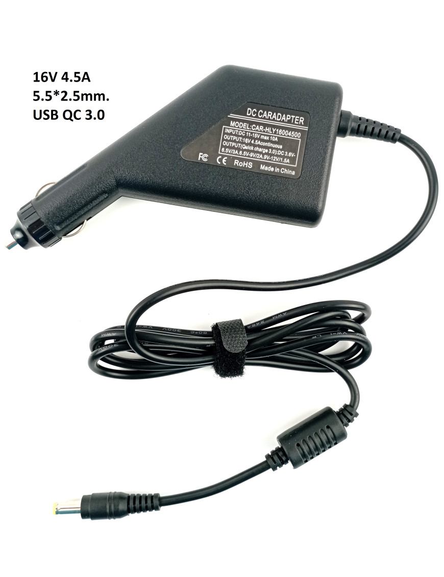 Автомобільний адаптер живлення 16V з додатковим USB 3,0 QC.